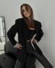 Marynarka 058 Black to oversizowa marynarka z logowaną podszewką. Do kompletu dołączony jest sznurek, który możesz przewiązać w talii. Wywiń rękawy i ciesz się niebanalnym motywem logowanej podszewki w kolorze czarno-białym. Marynarka jest bardzo dokładnie i porządnie odszyta. Jest to zdecydowanie produkt premium. Ramiona podkreślone poduszkami, prosty, oversizowy krój z wykładanymi klapami. Dodatkowo w zestawie pasek z dzianiny zasadniczej. Ozdobiona efektowną logowaną podszewką. Idealna do jeansów i t-shirtu jak i eleganckiej stylizacji. Możesz ubierać ją jako blazer. Rozmiar uniwersalny.
